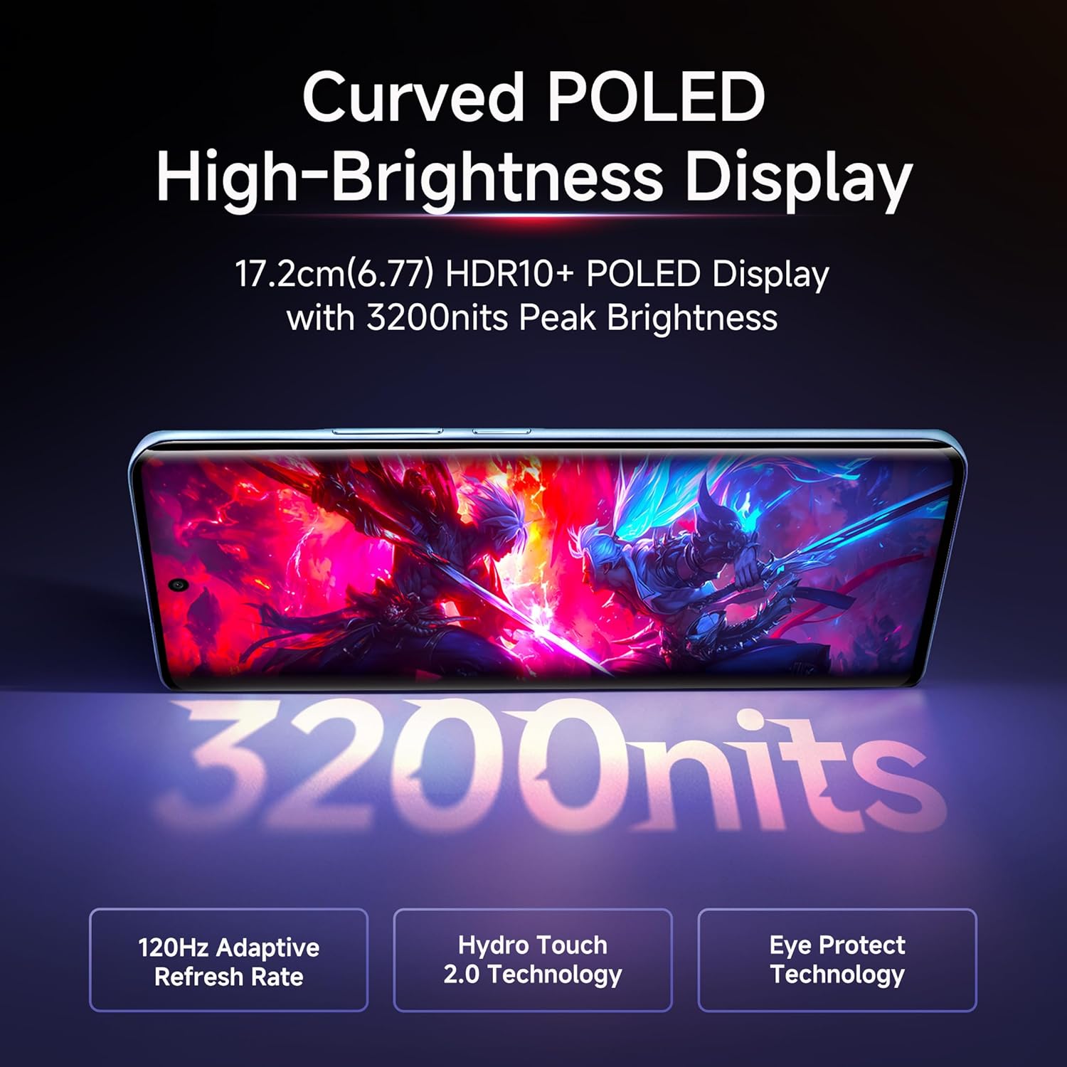 - 6.7″ 120Hz AMOLED, 3200-nits peak brightness. Smooth, vibrant, and visible even under harsh sunlight.